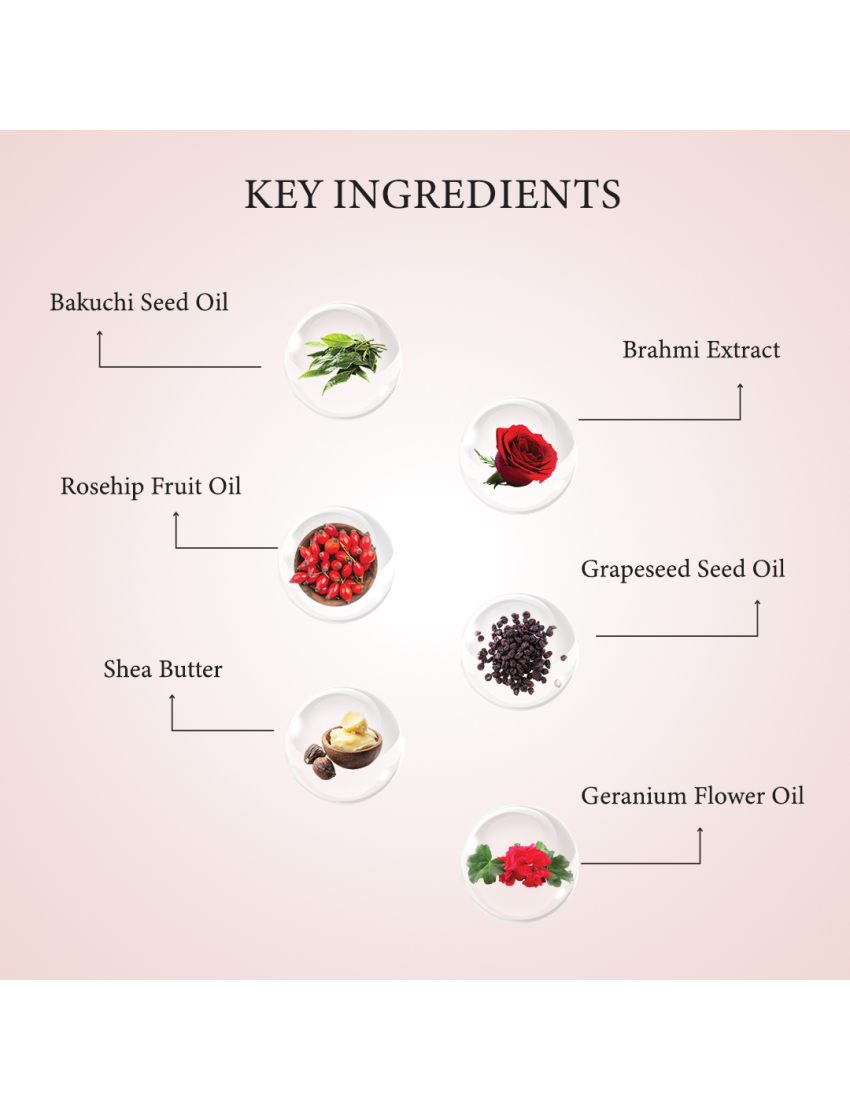 - Bakuchi & Saffron: Lighten pigmentation and boost radiance