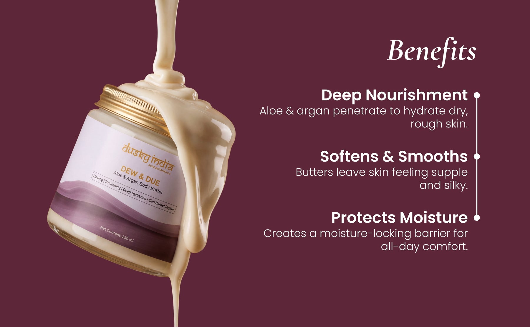 1. What does Dew & Due Aloe & Argan Body Butter do for the skin?