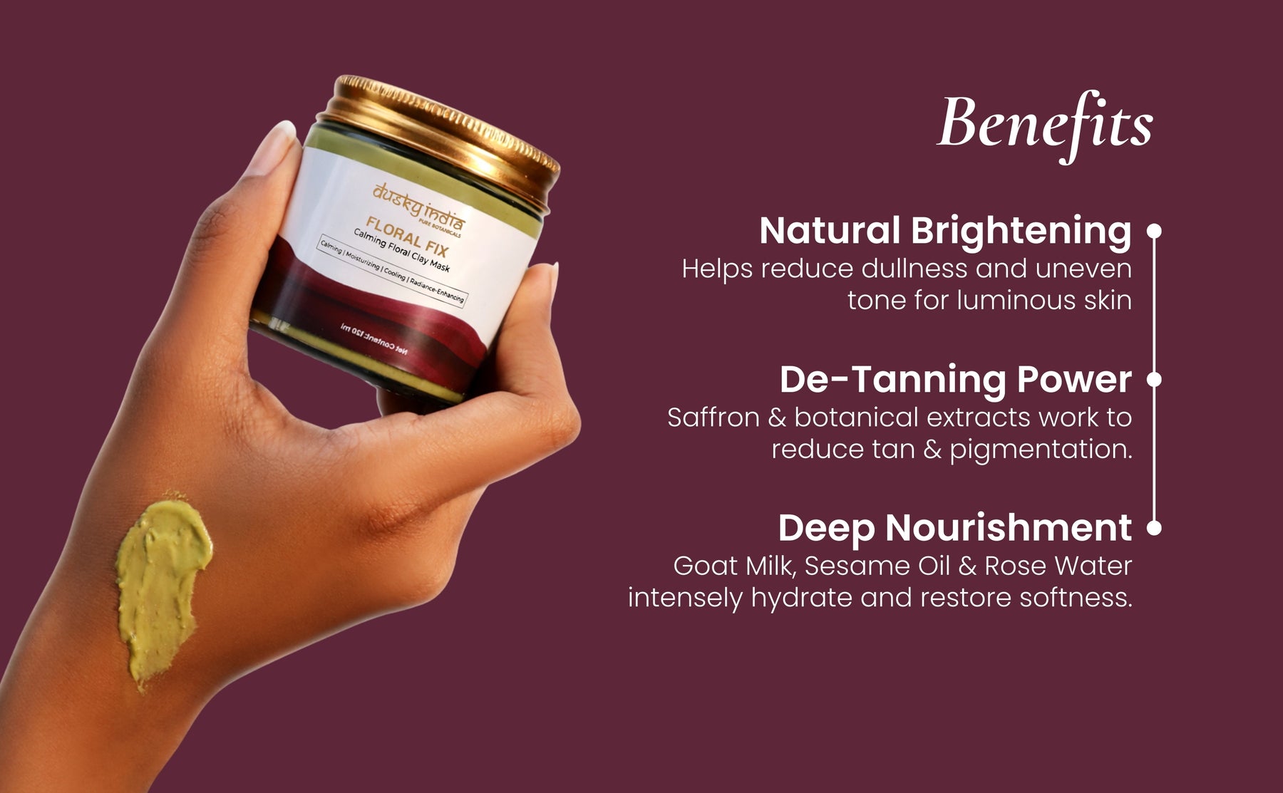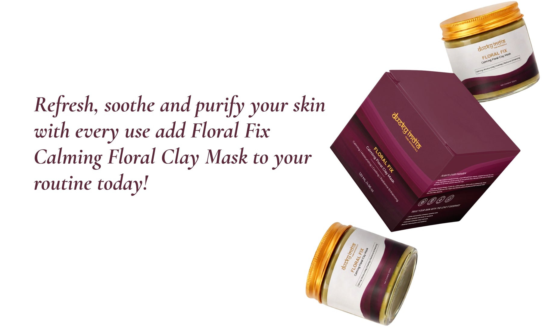 The Dusky India clay mask is perfect for weekly skin detox sessions, leaving your complexion feeling clean, calm, and visibly refreshed.