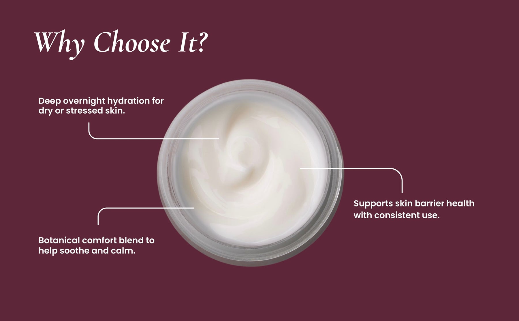 At night, your skin enters repair mode, making it the best time for deeper nourishment. This cream is formulated to replenish moisture, repair damage, and strengthen the skin barrier overnight, which daytime moisturizers typically don’t focus on.