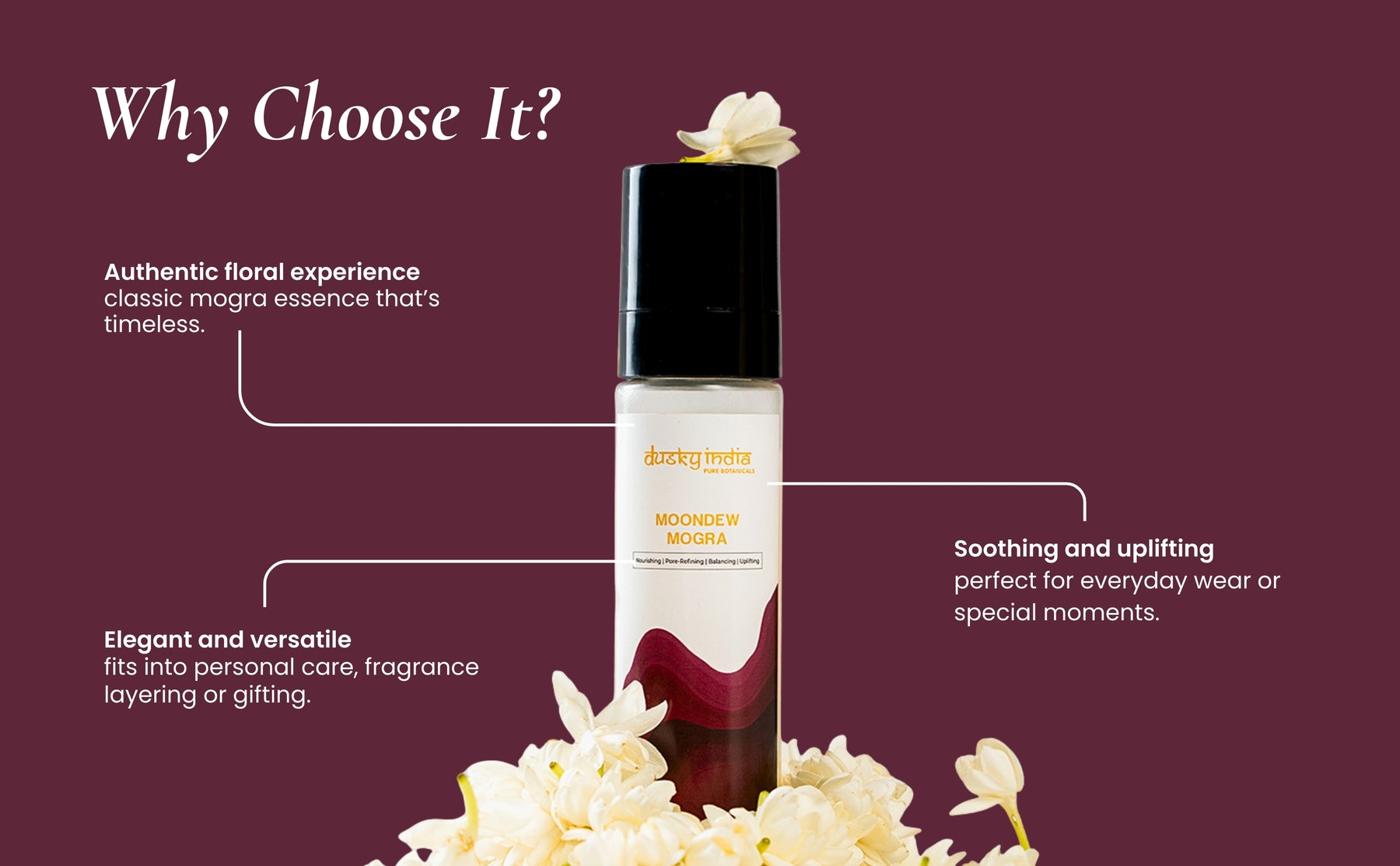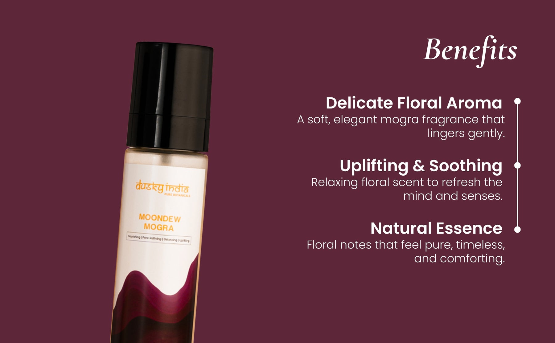 Skincare often begins with cleansing, but what truly brings balance back to the skin is the right toner. The MoonDew Mogra Toner by Dusky India is a soothing mogra face toner that refreshes, hydrates, and prepares your skin for the rest of your skincare routine. Crafted with botanical ingredients, this toner captures the delicate essence of jasmine flowers to deliver a calming and nourishing experience.