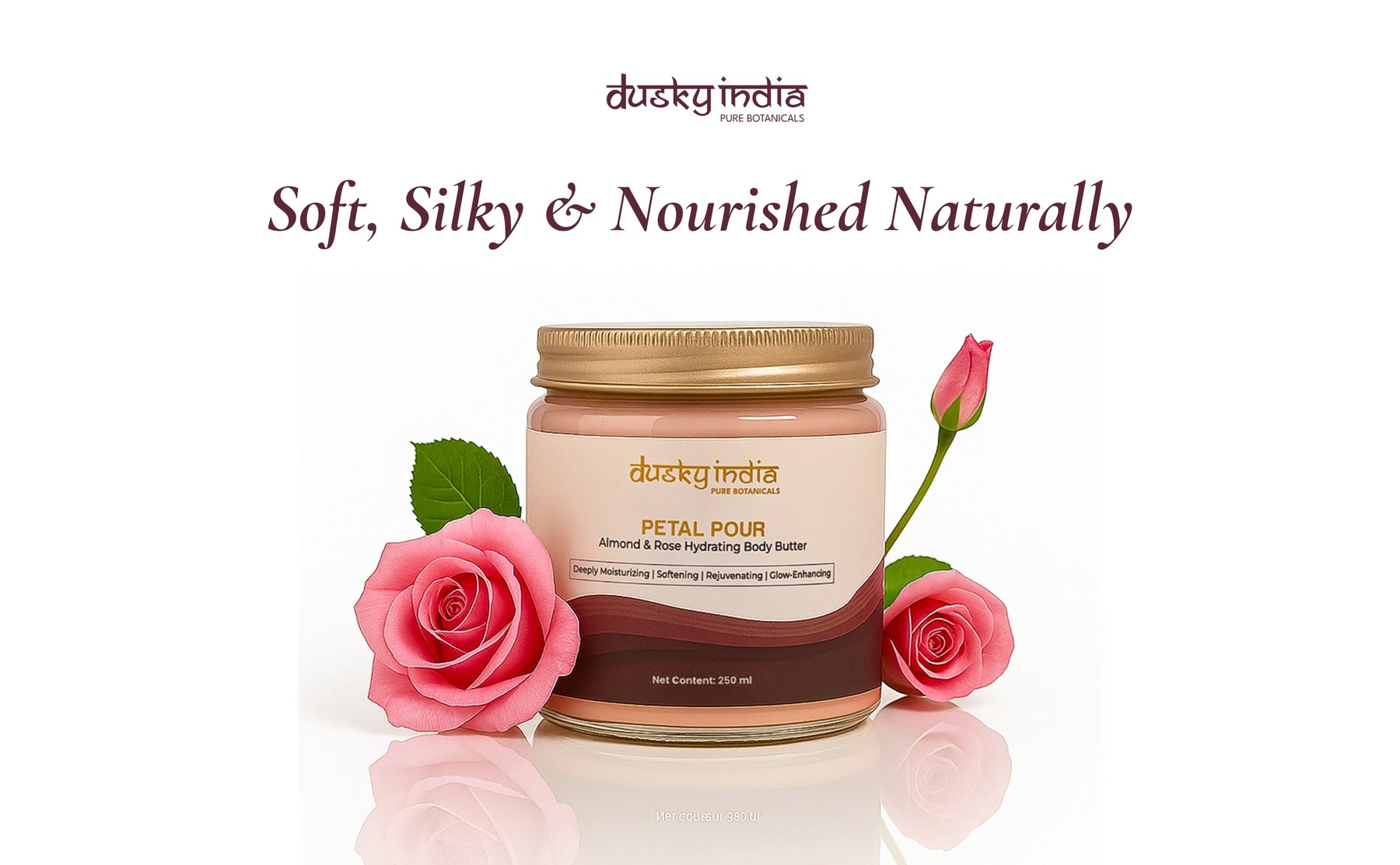 Petal Pour is a deeply nourishing body butter that helps hydrate dry skin, improve texture, and restore softness. It replenishes moisture while leaving the skin smooth, supple, and naturally radiant.